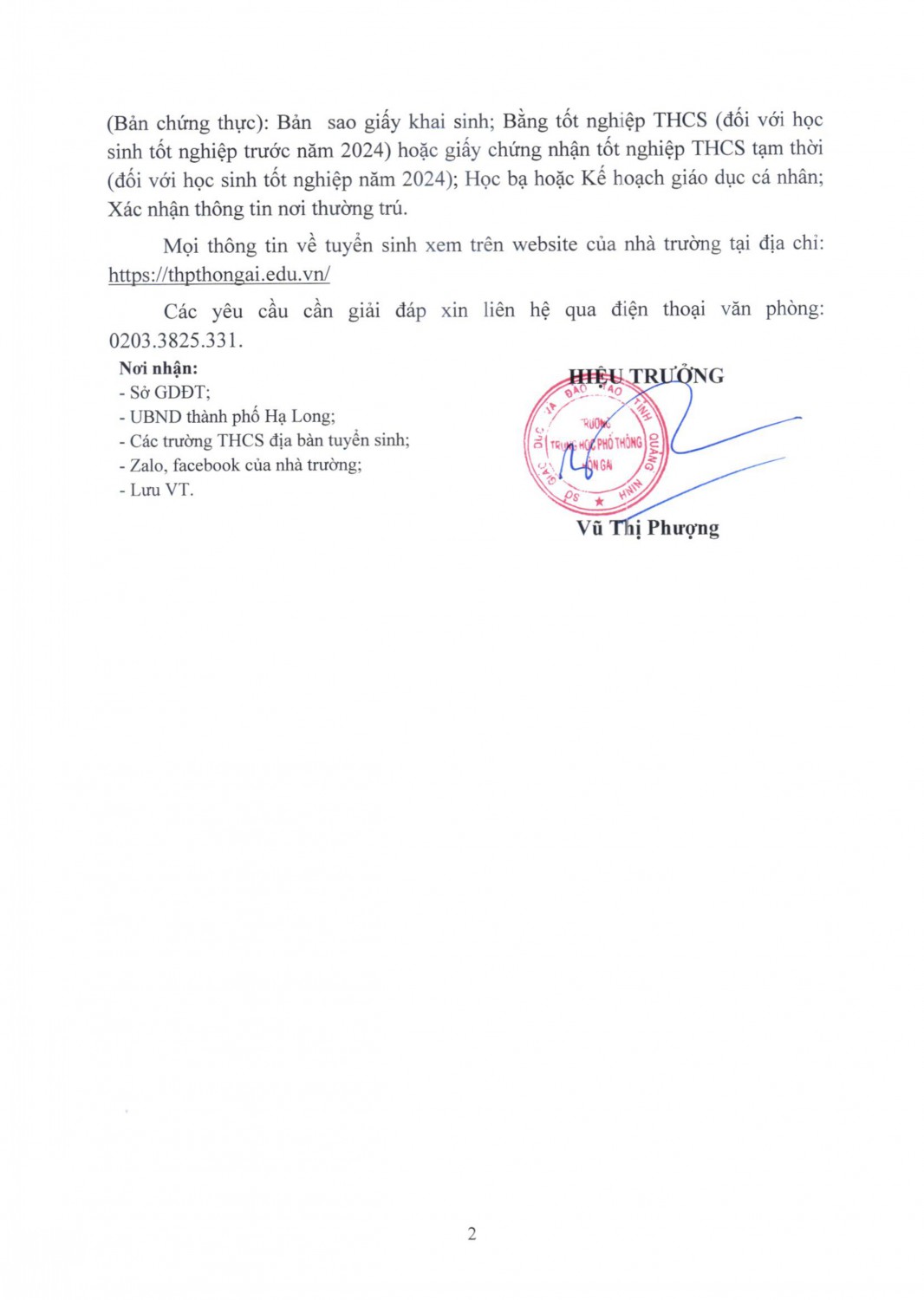 Thông báo số 2 về tuyển sinh 10 tại trường THPT Hòn Gai năm học 2021 - 2022